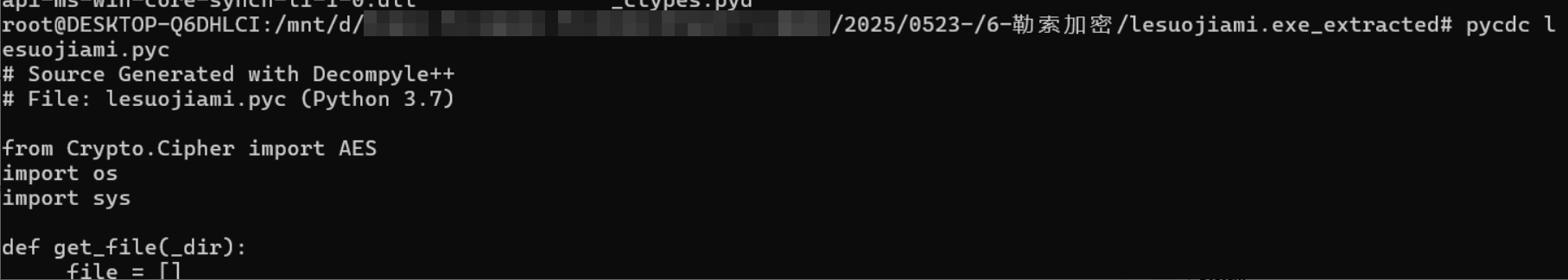 然后安装 pycdc,反编译 lesuojiami.pyc