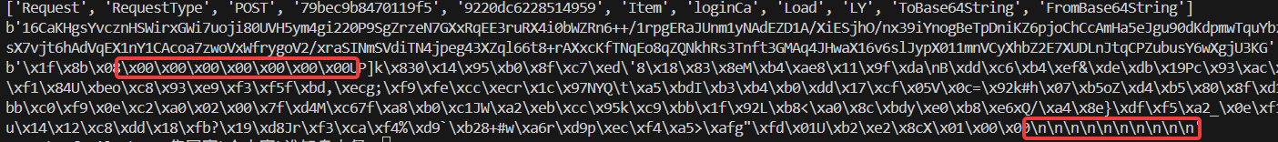 此时虽然大部分都是不可见字符,但是头尾都有一些规律