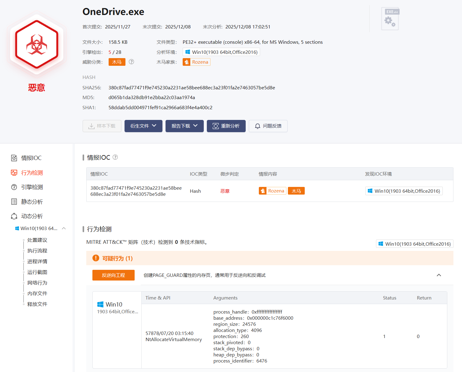 微步沙箱分析没有网络连接的结果,提示有反逆向功能