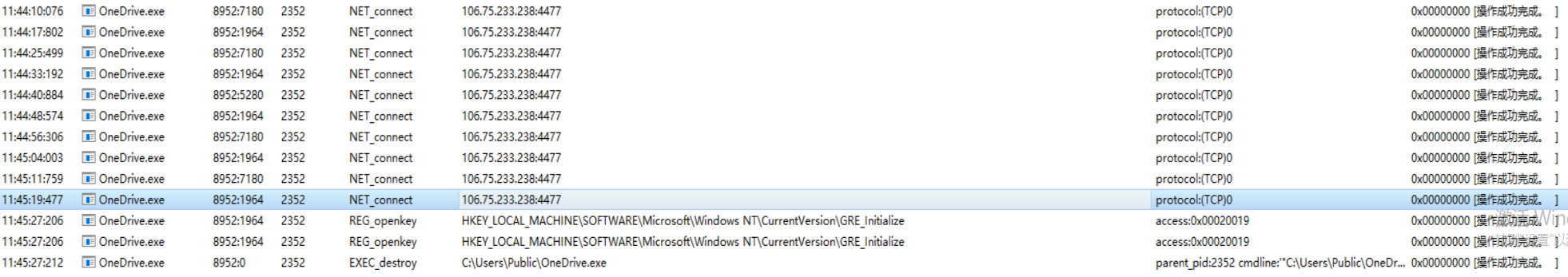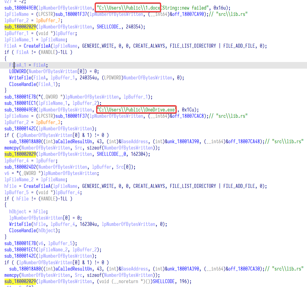 第二段数据在 Init 函数执行解密后写入到文件 C:\Users\Public\OneDrive.exe ,在虚拟机中运行后可以复制出