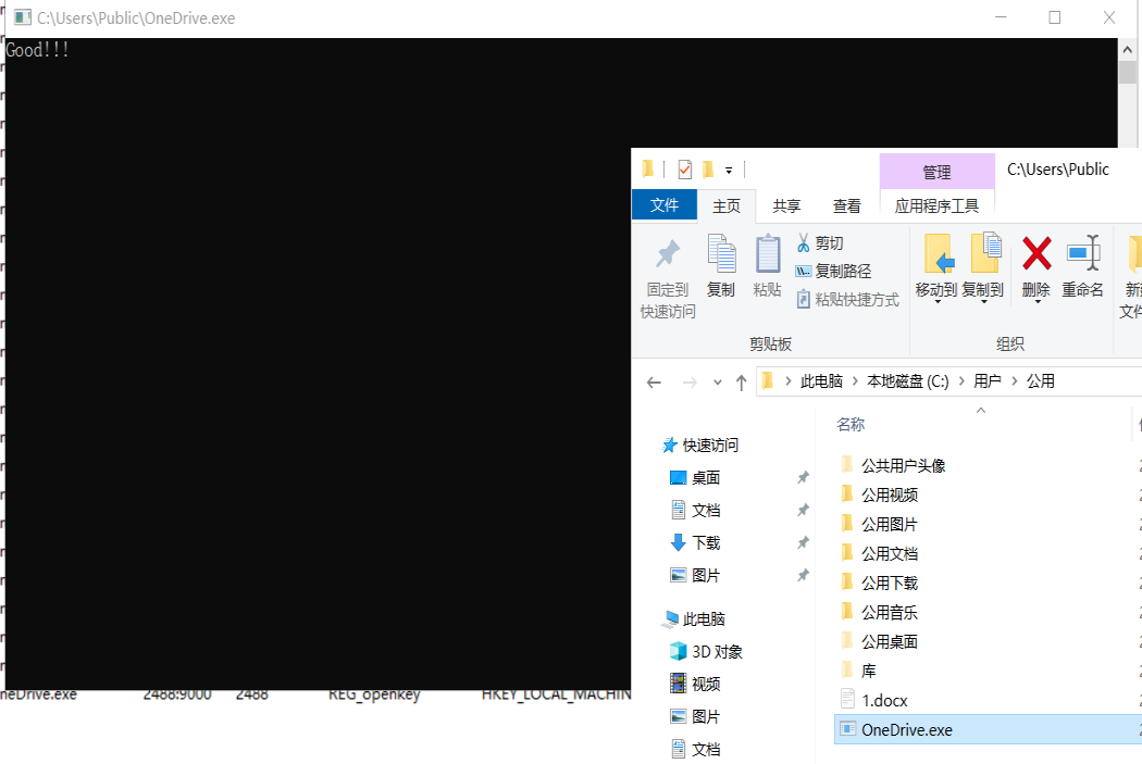 OneDrive.exe 直接运行后会有一个 cmd 窗口输出 Good!!!
