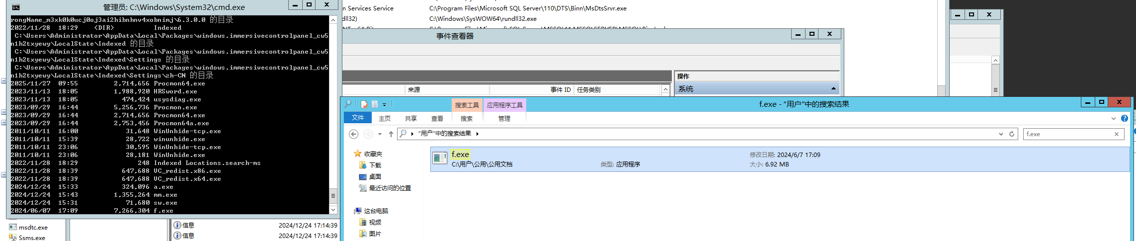 搜索 exe 程序,发现 f.exe ,可以根据同目录下的 results.txt 推断是 fscan