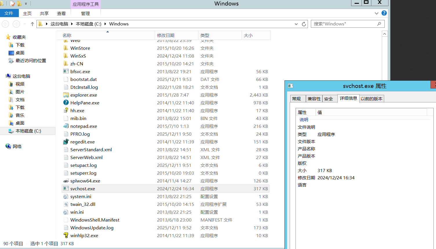 C:\Windows 下有一个 svchost.exe ,正常的系统文件应该是在 C:\Windows\System32 目录下