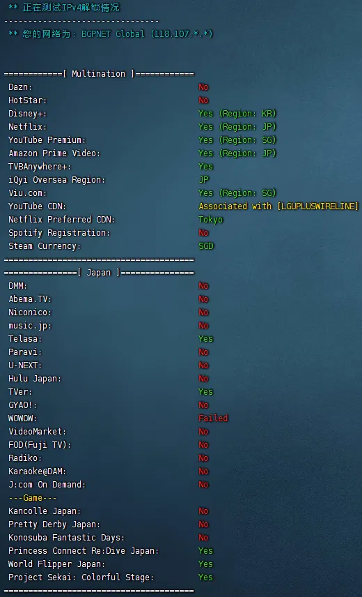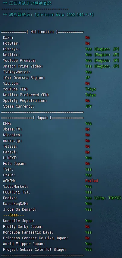 1 54.150.128.17 AS16509 JP Tokyo Tokyo amazon.com ec2-54-150-128-17.ap-northeast-1.compute.amazonaws.com. 2.44 ms / 2.48 ms / 2.24 ms 2 * 3 * 4 * 5 241.0.8.10 * Reserved Reserved 0.52 ms / 0.52 ms / 0.32 ms 6 240.1.52.2 * Reserved Reserved 0.51 ms / 0.53 ms / 0.31 ms 7 240.1.52.31 * Reserved Reserved 0.54 ms / 0.44 ms / 0.36 ms 8 240.1.52.7 * Reserved Reserved 0.61 ms / 0.37 ms / 0.62 ms 9 242.3.91.129 * Reserved Reserved 0.60 ms / 0.38 ms / 0.61 ms 10 52.95.30.209 AS16509 Japan Tokyo Tokyo amazon.com 3.41 ms / 3.18 ms / 3.41 ms 11 52.95.31.121 AS16509 Japan Tokyo Tokyo amazon.com 3.16 ms / 3.42 ms / 3.45 ms 12 52.95.31.8 AS16509 Japan Tokyo Tokyo amazon.com 2.64 ms / 2.89 ms / 2.90 ms 13 100.91.149.80 * LAN Address 2.55 ms / 2.90 ms / 2.85 ms 14 100.91.3.151 * 日本 东京都 东京 3.94 ms / 3.70 ms / 3.93 ms 15 100.91.135.87 * Shared Address Shared Address 3.64 ms / 3.87 ms / 3.88 ms 16 240.0.188.12 * LAN Address 9.39 ms / 9.17 ms / 9.41 ms 17 242.4.212.5 * LAN Address 10.79 ms / 10.45 ms / 10.77 ms 18 150.222.77.152 * Japan Tokyo Tokyo Amazon Technologies Inc. 4.00 ms / 3.79 ms / 4.00 ms 19 * 20 154.54.87.253 AS174 美国 加利福尼亚州 洛杉矶 cogentco.com be3080.ccr71.tyo01.atlas.cogentco.com. 7.29 ms / 4.31 ms / 3.99 ms 21 154.54.86.137 AS174 美国 加利福尼亚州 圣何塞 cogentco.com be3696.ccr41.sjc03.atlas.cogentco.com. 108.76 ms / 108.78 ms / 108.51 ms 22 38.104.138.106 AS174 美国 加利福尼亚州 圣何塞 Cogent-CT-Peer cogentco.com 114.05 ms / 113.78 ms / 114.02 ms 23 202.97.27.241 AS4134 中国 广东省 广州市 回国到达层 chinatelecom.cn 154.56 ms / 154.07 ms / 154.67 ms 24 202.97.91.189 AS4134 中国 广东省 广州市 chinatelecom.cn 154.32 ms / * ms / * ms 25 202.97.94.133 AS4134 中国 广东省 广州市 chinatelecom.cn 155.99 ms / 156.72 ms / 156.60 ms 26 202.97.85.70 AS4134 中国 四川省 成都市 chinatelecom.cn 196.61 ms / 196.33 ms / * ms 27 * 28 218.88.112.42 AS4134 中国 四川省 成都市 chinatelecom.cn 42.112.88.218.broad.cd.sc.dynamic.163data.com.cn. 188.43 ms / 188.30 ms / 188.11 ms 29 * 30 *