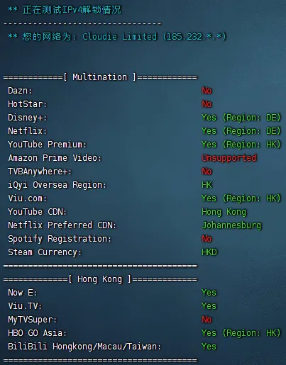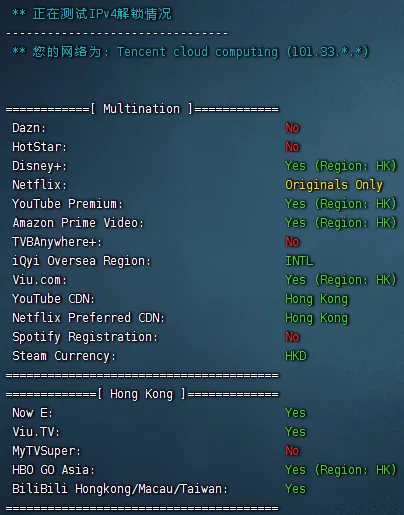 1 103.158.190.1 AS42960 [HK] 中国 香港 dogyun.com 0.44 ms / 0.60 ms / 0.43 ms 2 * 3 172.16.27.1 * LAN Address 8.07 ms / 7.26 ms / 8.19 ms 4 10.10.14.13 * LAN Address 1.10 ms / 0.62 ms / 1.23 ms 5 10.10.13.19 * LAN Address 1.78 ms / 1.60 ms / 1.63 ms 6 10.10.10.161 * LAN Address 1.55 ms / 1.80 ms / 1.80 ms 7 * 8 * 9 * 10 202.77.18.177 AS10099 [CUG-BACKBONE] 中国 香港 chinaunicom.cn 4.64 ms / 4.79 ms / 4.16 ms 11 61.14.201.77 * 中国 香港 chinaunicom.cn * ms / * ms / 4.05 ms 12 61.14.201.197 * 中国 香港 chinaunicom.cn 3.60 ms / 3.92 ms / 3.91 ms 13 43.252.86.129 AS10099 中国 香港 chinaunicom.cn 166.92 ms / 166.62 ms / 167.00 ms 14 219.158.10.49 AS4837 [CU169-BACKBONE] 中国 广东省 广州市 chinaunicom.cn 166.15 ms / * ms / * ms 15 219.158.103.29 AS4837 [CU169-BACKBONE] 中国 广东省 广州市 chinaunicom.cn 168.83 ms / 169.13 ms / * ms 16 219.158.8.117 AS4837 [CU169-BACKBONE] 中国 广东省 广州市 chinaunicom.cn 171.47 ms / 171.43 ms / 171.07 ms 17 219.158.97.70 AS4837 [CU169-BACKBONE] 中国 四川省 成都市 chinaunicom.cn 201.04 ms / 200.55 ms / 201.00 ms 18 119.6.197.2 AS4837 [UNICOM-SC] 中国 四川省 成都市 chinaunicom.cn 188.72 ms / 188.16 ms / 188.93 ms 19 * 20 * 21 * 22 * 23 * 24 139.155.*.* AS45090 [TencentCloud] 中国 四川省 成都市 tencent.com 50.61 ms / 50.60 ms / 50.09 ms阿里云深圳