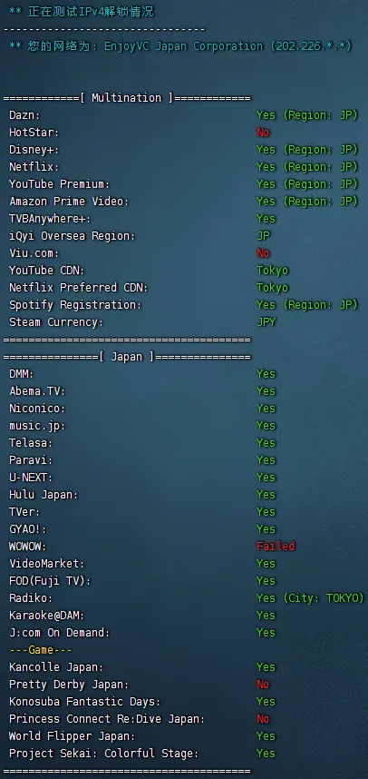 1 54.150.128.95 AS16509 日本 东京都 东京 amazon.com ec2-54-150-128-95.ap-northeast-1.compute.amazonaws.com. 2.78 ms / 2.52 ms / 2.82 ms 2 * 3 * 4 * 5 241.0.8.13 * Reserved Reserved 0.31 ms / 0.56 ms / 0.55 ms 6 240.1.52.1 * LAN Address 0.51 ms / 0.42 ms / 0.34 ms 7 240.1.52.19 * Reserved Reserved 0.61 ms / 0.39 ms / 0.62 ms 8 240.1.52.7 * Reserved Reserved 0.50 ms / 0.50 ms / 0.31 ms 9 242.3.91.129 * Reserved Reserved 0.59 ms / 0.61 ms / 0.38 ms 10 15.230.161.195 * JP Tokyo Tokyo Amazon Technologies Inc. 0.76 ms / 0.96 ms / 0.88 ms 11 15.230.161.186 * JP Tokyo Tokyo Amazon Technologies Inc. 1.74 ms / 1.99 ms / 1.99 ms 12 52.93.72.88 * Japan Tokyo Tokyo Amazon Technologies Inc. 0.98 ms / 0.85 ms / 1.08 ms 13 100.91.137.96 * LAN Address 11.20 ms / 11.21 ms / 10.98 ms 14 150.222.250.3 * 日本 东京都 东京 Amazon Technologies Inc. 7.15 ms / 7.40 ms / 7.41 ms 15 100.91.135.101 * Shared Address Shared Address 2.64 ms / 2.48 ms / 2.55 ms 16 240.0.188.12 * LAN Address 8.37 ms / 8.33 ms / 8.03 ms 17 242.4.212.5 * LAN Address 9.12 ms / 8.91 ms / 9.11 ms 18 150.222.77.8 * JP Tokyo Tokyo Amazon Technologies Inc. 1.51 ms / 1.28 ms / 1.49 ms 19 61.120.146.117 AS2914 Japan Tokyo Tokyo ntt.com ae-10.r02.tokyjp08.jp.bb.gin.ntt.net. 2.55 ms / 2.70 ms / 2.76 ms 20 129.250.2.130 AS2914 JP Tokyo Tokyo ntt.com ae-6.r31.tokyjp05.jp.bb.gin.ntt.net. 3.57 ms / 3.35 ms / 3.57 ms 21 129.250.3.28 AS2914 日本 东京都 东京 ntt.com ae-3.r02.tokyjp05.jp.bb.gin.ntt.net. 3.70 ms / 3.85 ms / 3.76 ms 22 * 23 * 24 * 25 202.97.28.114 AS4134 中国 重庆市 重庆市 chinatelecom.cn 94.12 ms / 94.11 ms / 93.88 ms 26 * 27 * 28 118.112.16.114 AS38283 中国 四川省 成都市 net.ru 88.70 ms / 88.75 ms / 88.43 ms 29 * 30 * 31 * 32 * 33 139.155.*.* AS45090 中国 四川省 成都市 tencent.com 91.60 ms / 91.58 ms / 91.33 ms成都电信