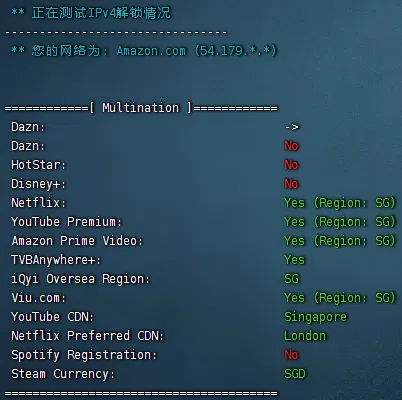 1 18.141.171.3 AS16509 SG Singapore Singapore amazon.com ec2-18-141-171-3.ap-southeast-1.compute.amazonaws.com. 8.97 ms / 8.68 ms / 9.00 ms 2 * 3 * 4 * 5 * 6 * 7 100.65.11.193 * LAN Address 0.63 ms / 0.62 ms / 0.39 ms 8 150.222.108.77 * SG Singapore Singapore amazon.com 2.10 ms / 2.10 ms / 1.87 ms 9 150.222.108.86 * SG Singapore Singapore amazon.com 2.55 ms / 2.54 ms / 2.29 ms 10 52.93.10.133 * SG Singapore Singapore amazon.com 1.49 ms / 1.73 ms / 1.72 ms 11 52.95.218.183 * US Virginia Ashburn amazon.com 2.34 ms / 2.56 ms / 2.56 ms 12 219.158.20.89 AS4837 中国 广东省 广州市 chinaunicom.cn 41.27 ms / 41.54 ms / 41.52 ms 13 * 14 219.158.24.125 AS4837 中国 广东省 广州市 chinaunicom.cn 59.05 ms / 58.80 ms / 59.05 ms 15 157.148.0.162 AS17816 中国 广东省 广州市 chinaunicom.cn 55.47 ms / 55.47 ms / 55.23 ms 16 120.80.99.22 AS135061 中国 广东省 深圳市 chinaunicom.cn 62.11 ms / 61.87 ms / 62.11 ms 17 * 18 * 19 * 20 * 21 * 22 112.74.*.* AS37963 中国 广东省 深圳市 aliyun.com 52.00 ms / 52.01 ms / 51.75 ms阿里云上海