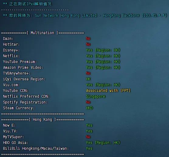 1 182.255.46.1 AS6134 中国 香港 hostker.com 0.33 ms / 0.56 ms / 0.40 ms 2 45.128.146.25 AS6134 中国 香港 hostker.com 0.62 ms / 0.49 ms / 0.59 ms 3 172.16.25.1 * LAN Address 9.26 ms / 7.13 ms / 6.91 ms 4 10.10.14.9 * LAN Address 0.55 ms / 0.64 ms / 0.60 ms 5 10.10.13.1 * LAN Address 1.26 ms / 1.30 ms / 1.16 ms 6 * 7 * 8 * 9 202.77.18.177 AS10099 中国 香港 chinaunicom.cn 5.58 ms / 5.59 ms / 5.44 ms 10 61.14.201.77 * 中国 香港 China Unicom (Hong Kong) Operations Limited 4.03 ms / * ms / * ms 11 61.14.201.197 * 中国 香港 China Unicom (Hong Kong) Operations Limited 8.67 ms / 8.54 ms / 8.66 ms 12 202.77.23.25 AS10099 中国 香港 chinaunicom.cn 62.55 ms / 62.38 ms / 62.56 ms 13 219.158.20.97 AS4837 中国 广东省 广州市 chinaunicom.cn 74.48 ms / 74.47 ms / 74.33 ms 14 219.158.24.137 AS4837 中国 广东省 广州市 chinaunicom.cn 60.19 ms / 60.34 ms / 60.33 ms 15 219.158.24.125 AS4837 中国 广东省 广州市 chinaunicom.cn 120.84 ms / 120.82 ms / 120.68 ms 16 219.158.100.222 AS4837 中国 四川省 成都市 chinaunicom.cn 138.28 ms / 138.29 ms / 138.12 ms 17 119.6.197.250 AS4837 中国 四川省 成都市 chinaunicom.cn 110.15 ms / 109.77 ms / 110.21 ms 18 * 19 * 20 * 21 * 22 * 23 139.155.*.* AS45090 中国 四川省 成都市 tencent.com 83.42 ms / 83.40 ms / 83.25 ms成都电信